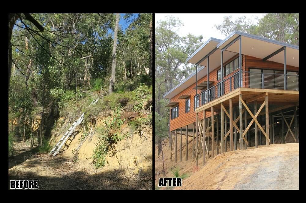 Building on difficult sites throughout the hills of Perth and its surrounds is our specialty – we’ve been doing it for over 40 years. A large percentage of the houses we build on these sites are timber framed and pole homes. While brick construction is still a possibility on a lot of these blocks, the siteworks to achieve this can be quite costly, which is where pole homes become a fantastic alternative, allowing you to maximise your views, make the most of the available space and save on site costs.